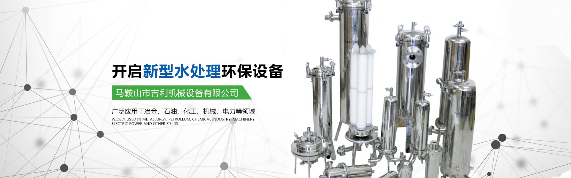 馬鞍山市吉利機械設備有限公司位于江南名城一馬鞍山市,交通十分便利。公司具有獨立法人資格,是集水處理設備的研發(fā)、設計、生產、銷售為一體的專業型企業。公司的主要產品有高中速過濾器、纖維球過濾器、新型除油過濾器、無閥過濾器、加藥裝置、管道全自動過濾器、淺層砂過濾器、攪拌機、沙水分離器、管道靜態(tài)混合器、化水設備、反滲透等膜處理設備、空氣過濾器等。公司所研發(fā)的產品有占地少、處理效果好、投資省、操作管理方便的優(yōu)點,受到客戶的一致好評。